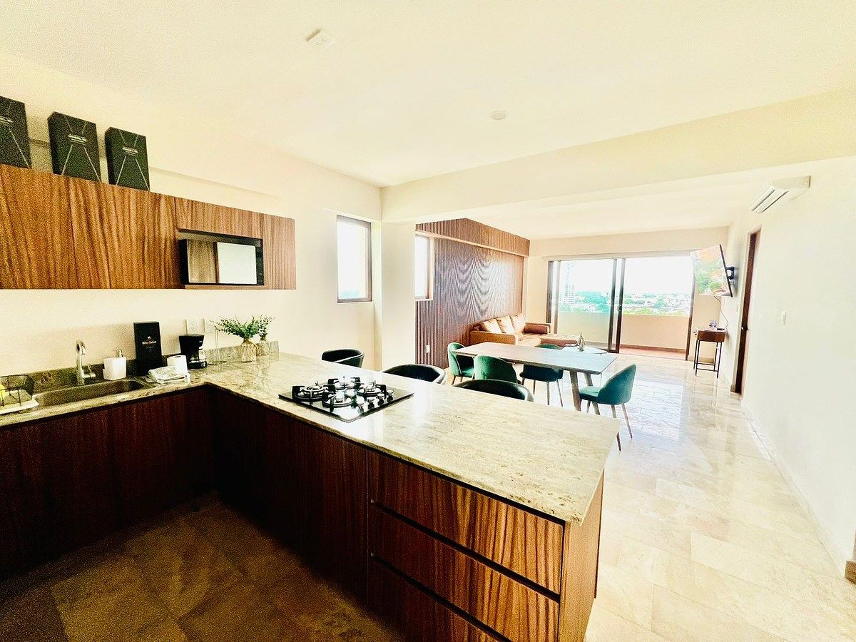 2 Recámaras y 2 baños completos, sala-comedor, cocina equipada, área de lavado, estacionamiento, amplio Balcón con excelentes vistas al Mar y al Río