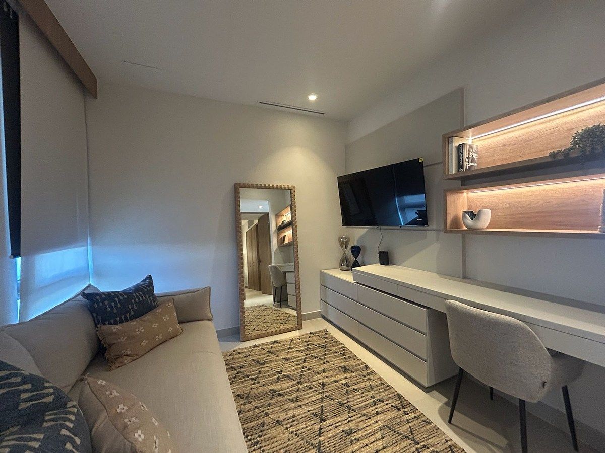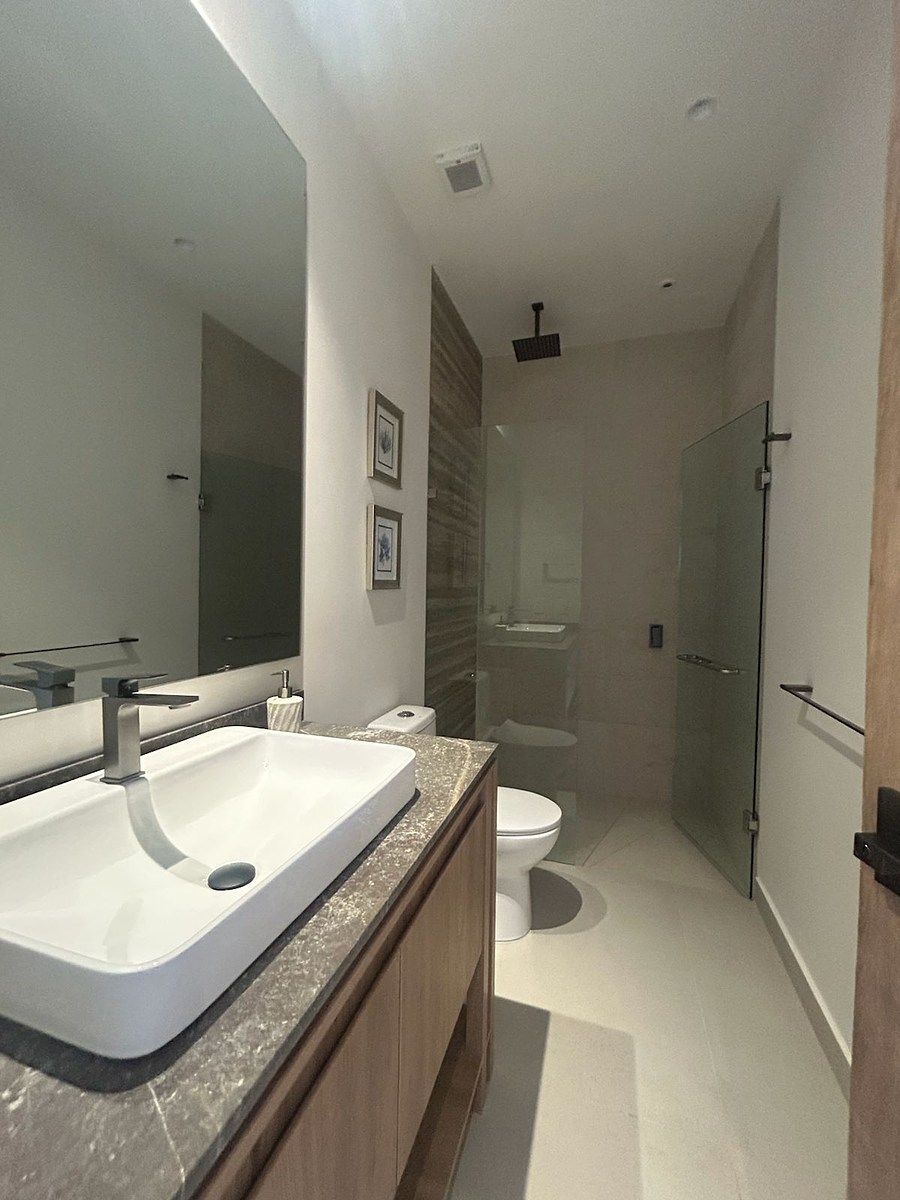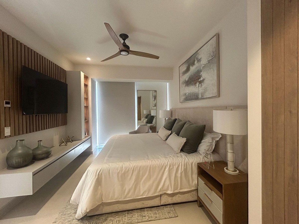 Estructura de concreto armado con acero y losas aligeradas, muros divisorios entre condominios y contra pasillos de block sólido con acabado arenado fino, piso de porcelanato color marfil, ventanas de PVC con vidrio templado y equipo de aire acondicionado con sistemas VRF.