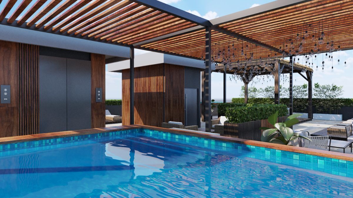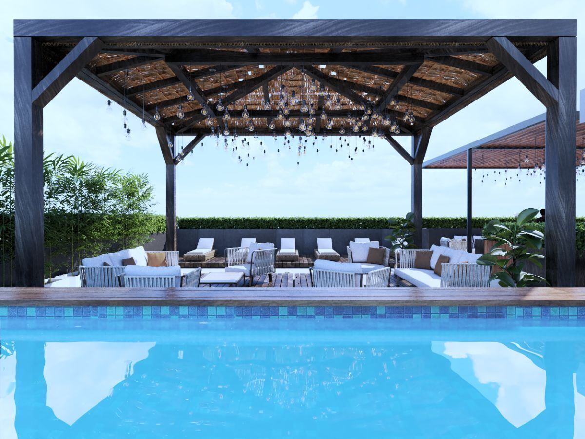 Alberca principal, Alberca con chapoteadero, Área de palapas y asoleaderos, Gym, Pet Zone,