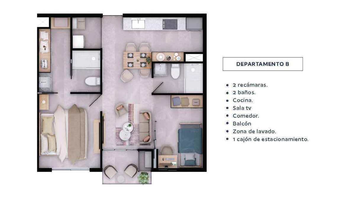 Las imágenes o Renders son únicamente para fines ilustrativos, los diseños y características pueden variar. No incluye mobiliario.