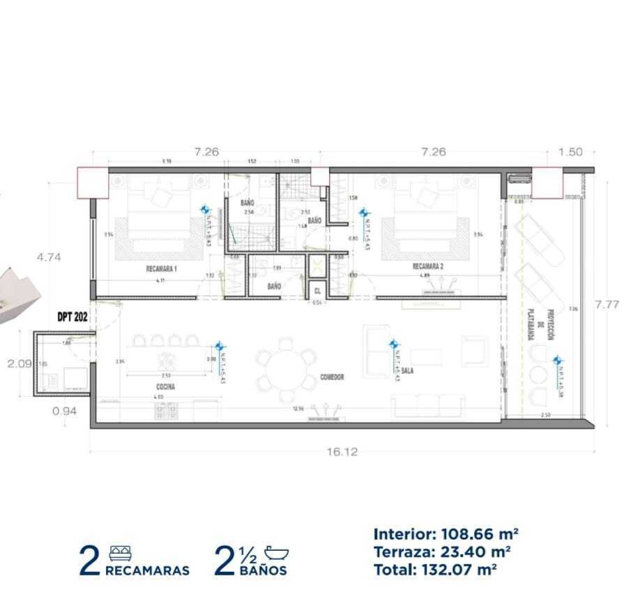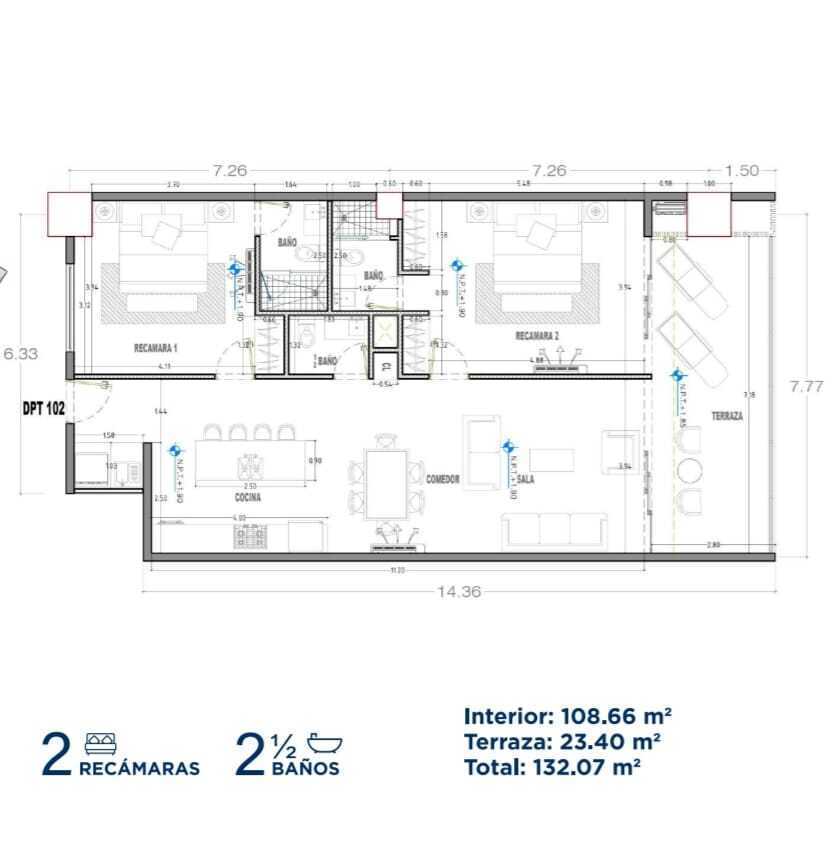 Unidades de 2 Recámaras y 2.5 baños