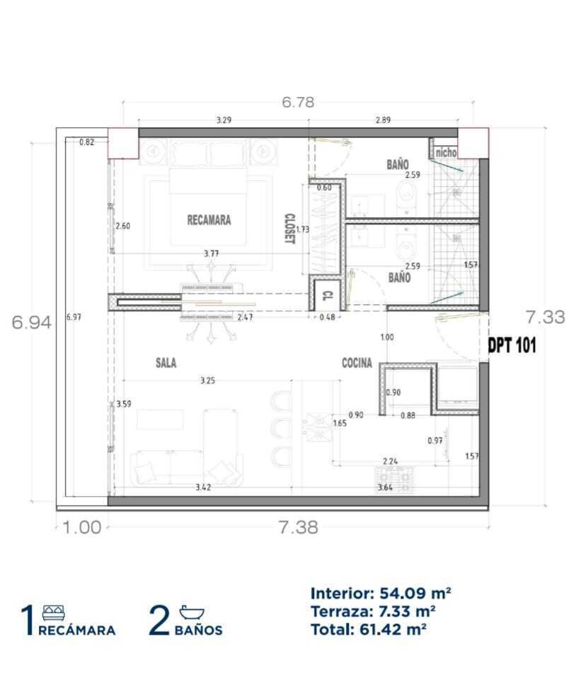 Unidades de 1 y 2 recámaras