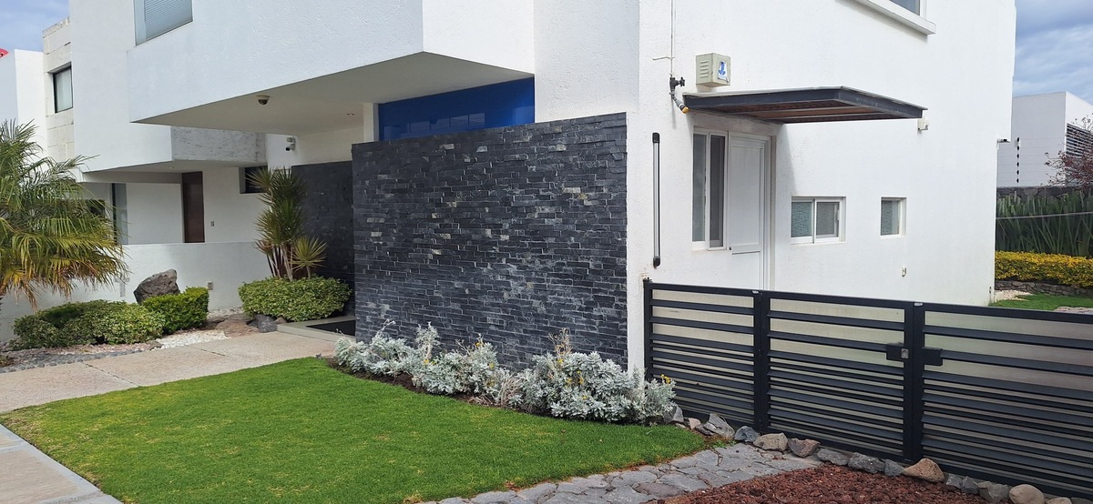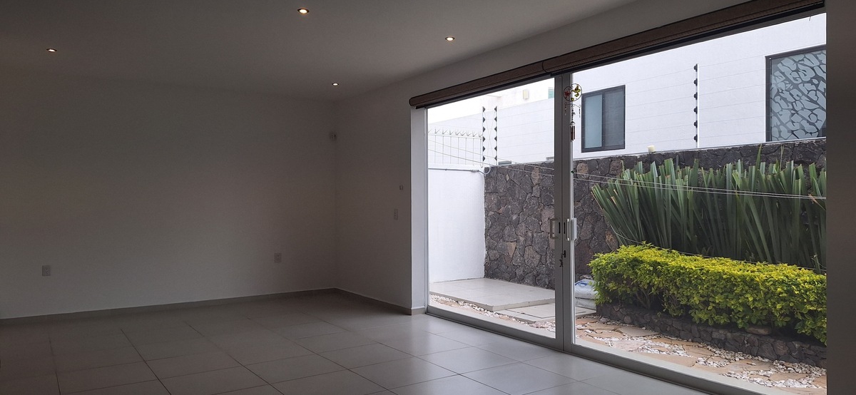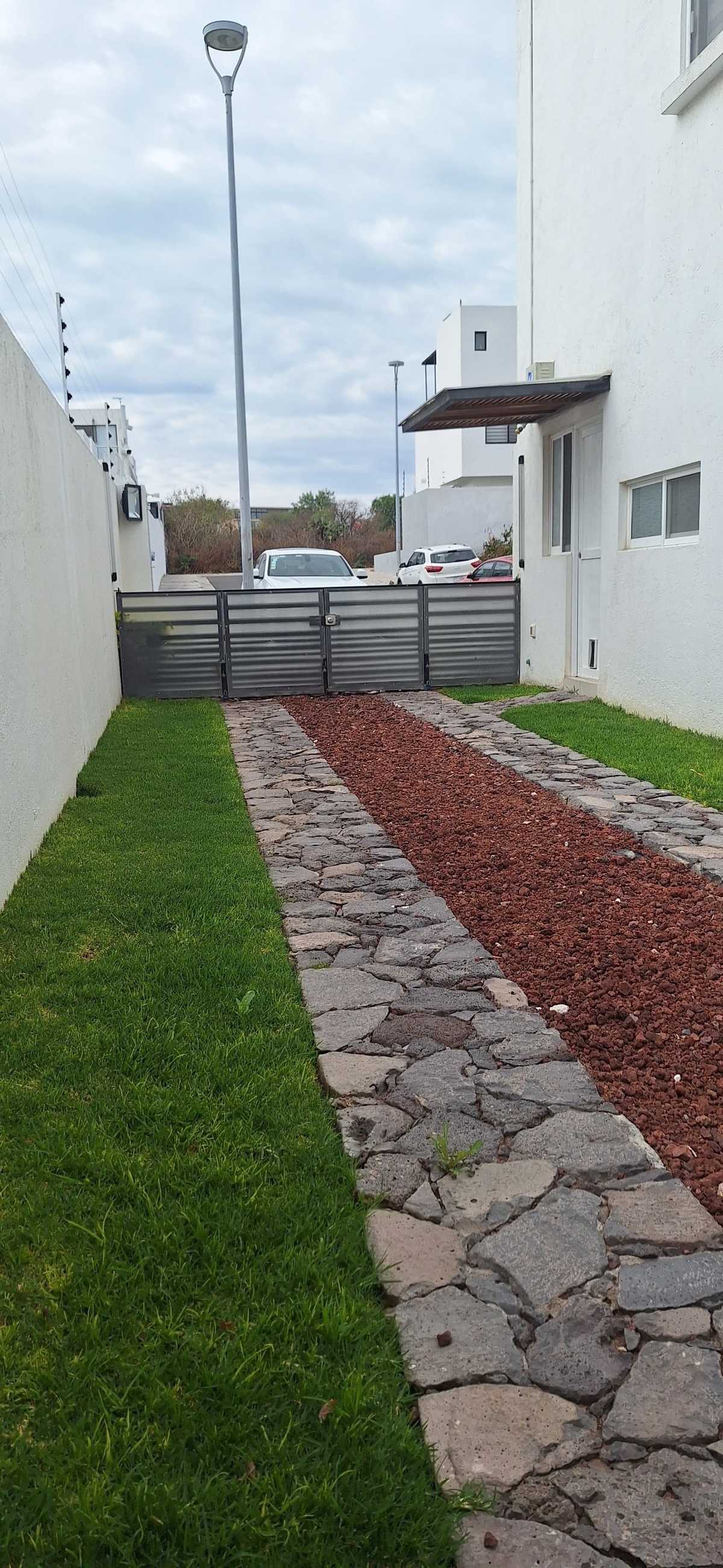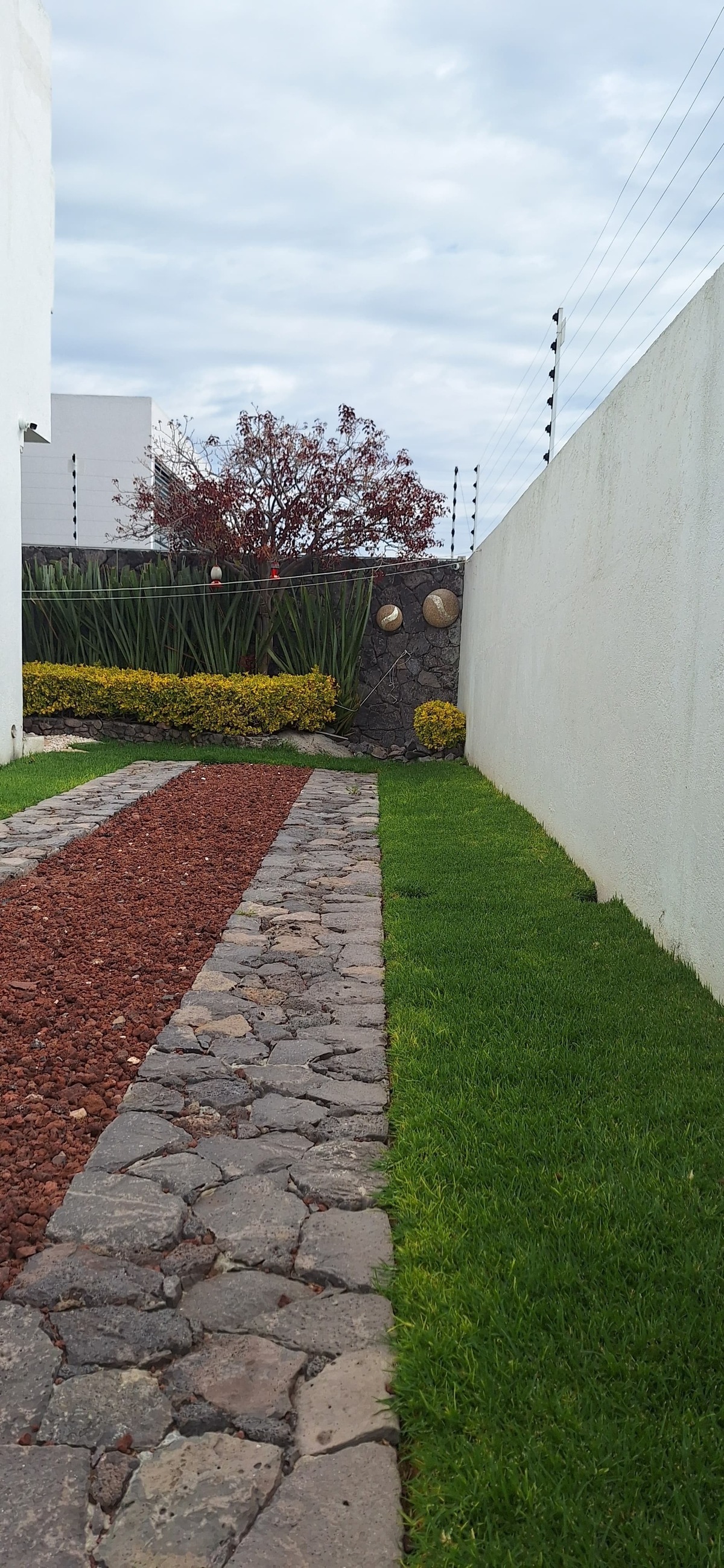 Estacionamiento para 3 autos, cocina y sala con persianas eléctricas , patio trasero con jardín y sistema de riego
