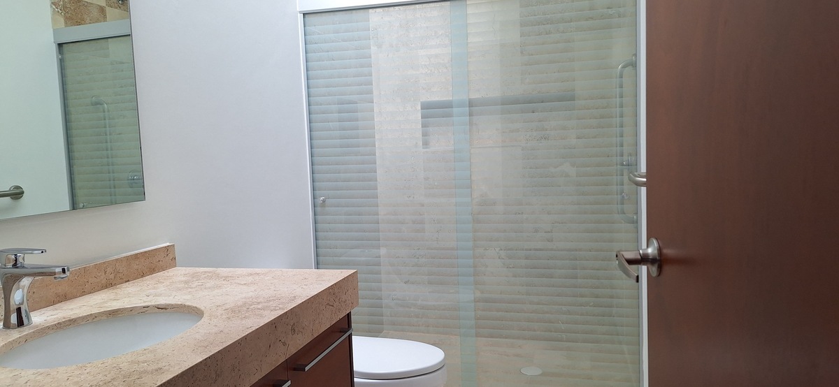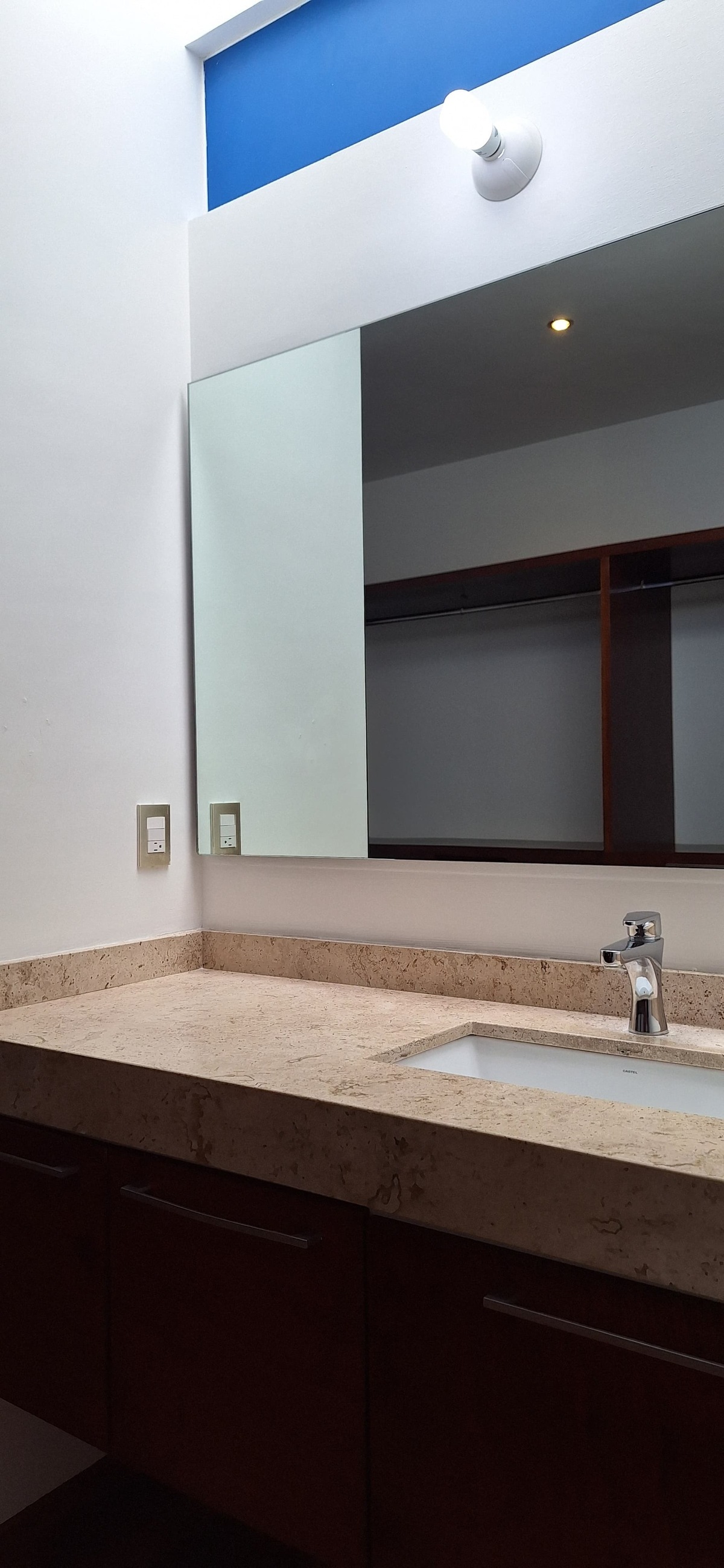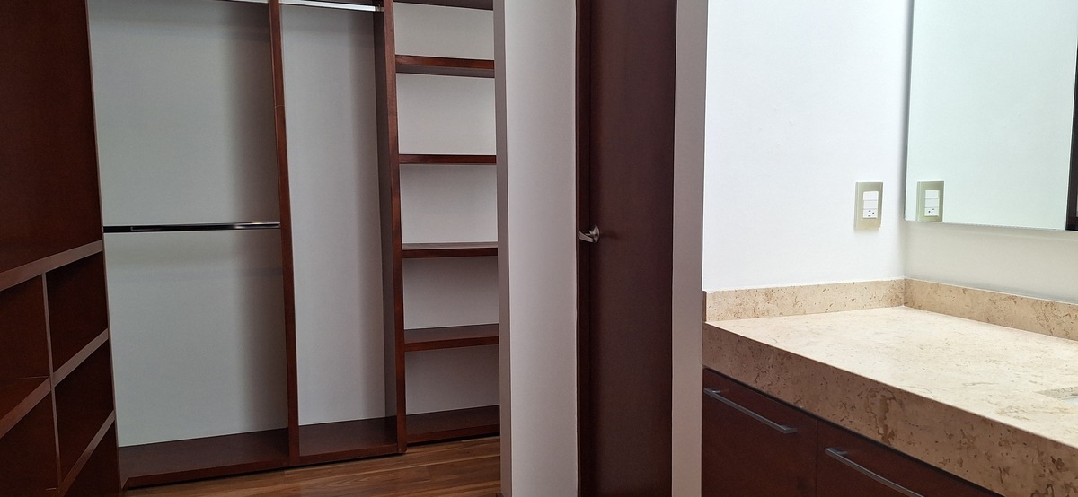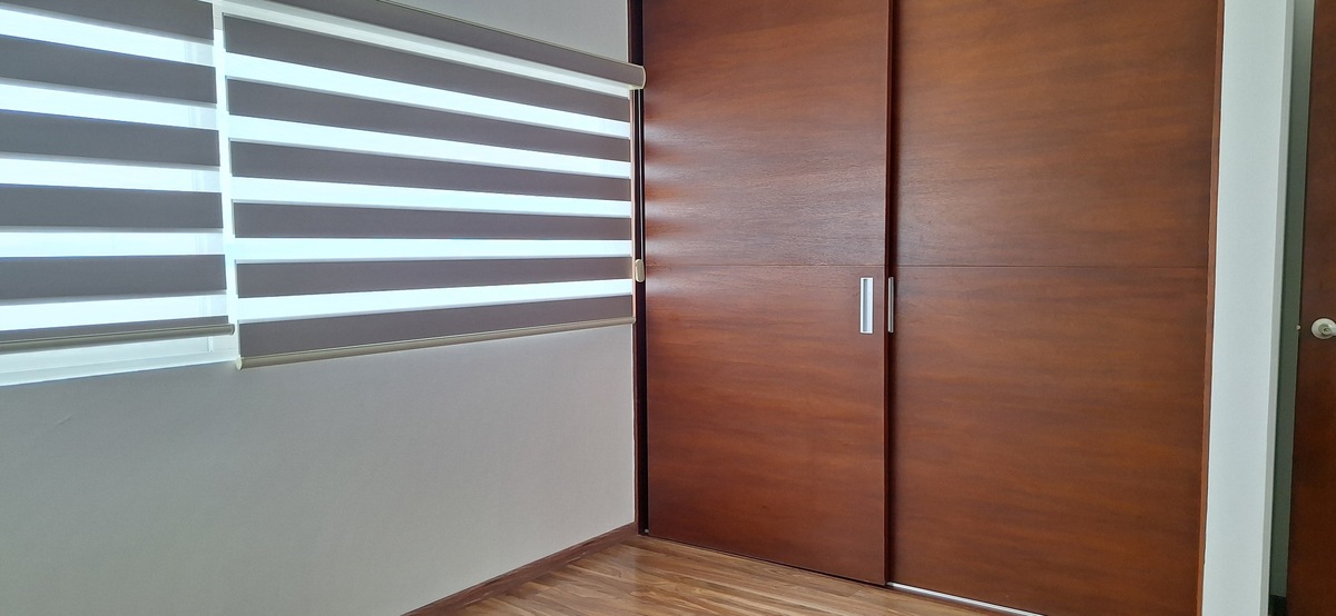 3 recámaras con persianas black out y aire acondicionado , principal con baño completo y vestidor, 2 recámaras secundarias que comparten baño completo.