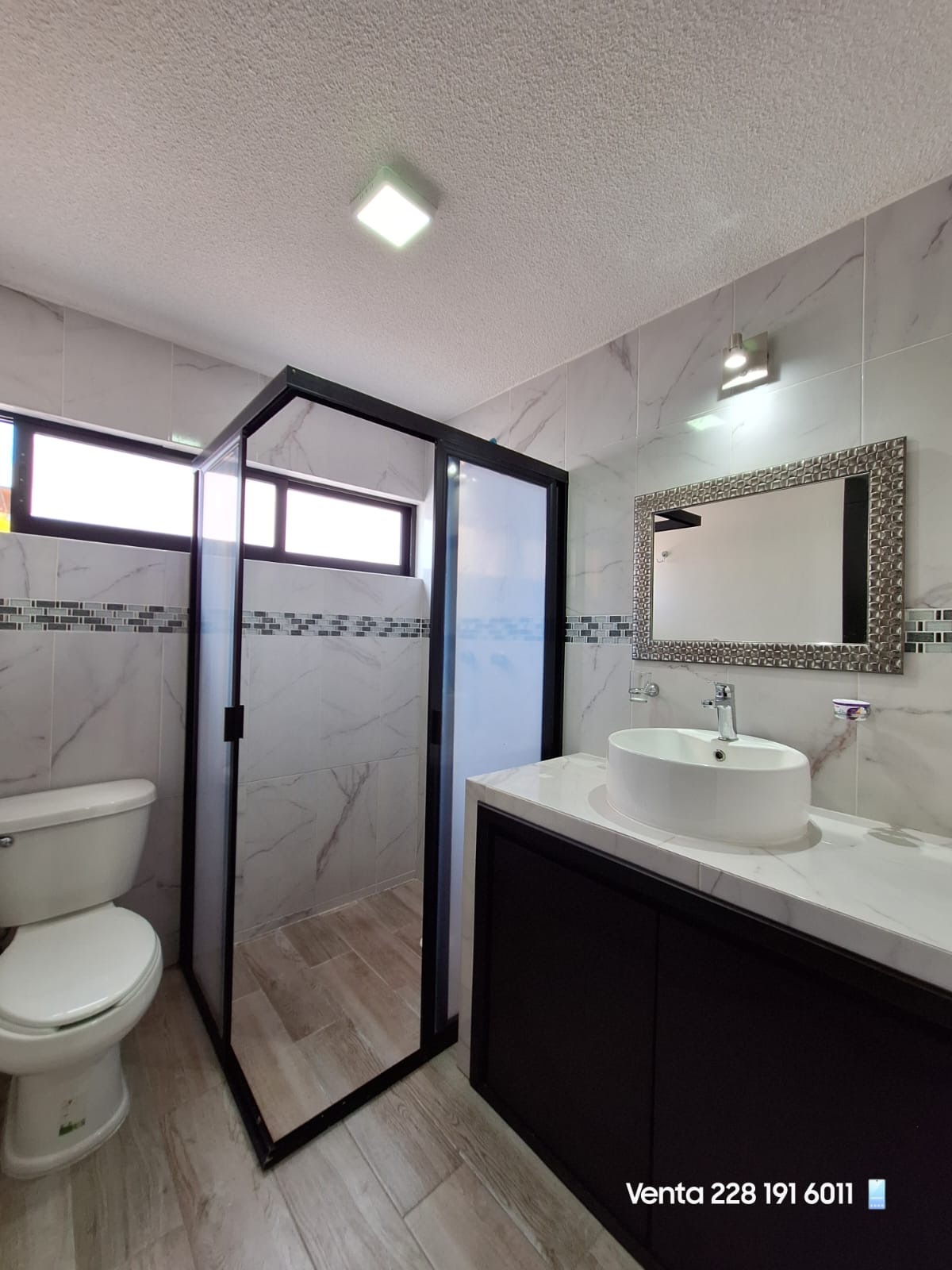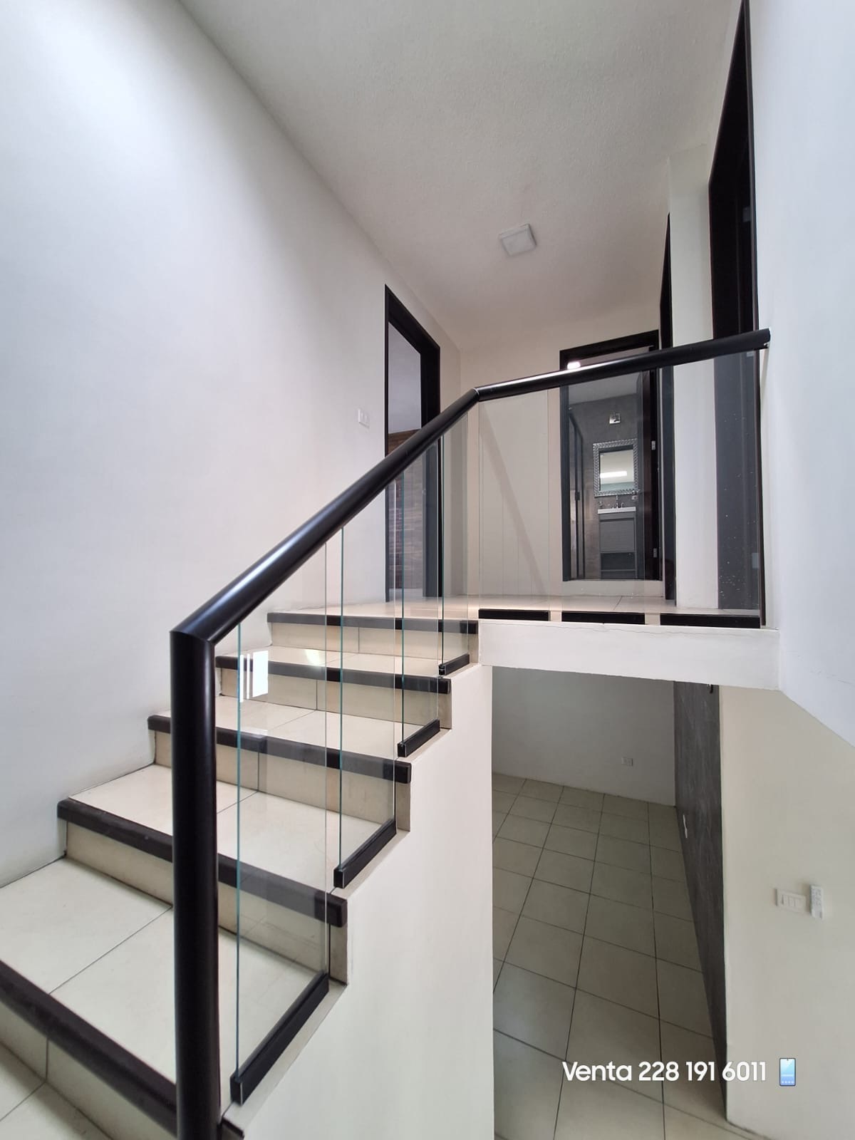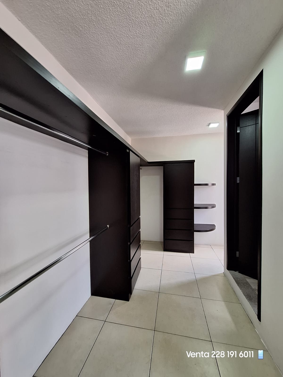 Planta alta: recámara principal con vestidor y baño, y atrás hay dos más con clóset y baño completo compartido