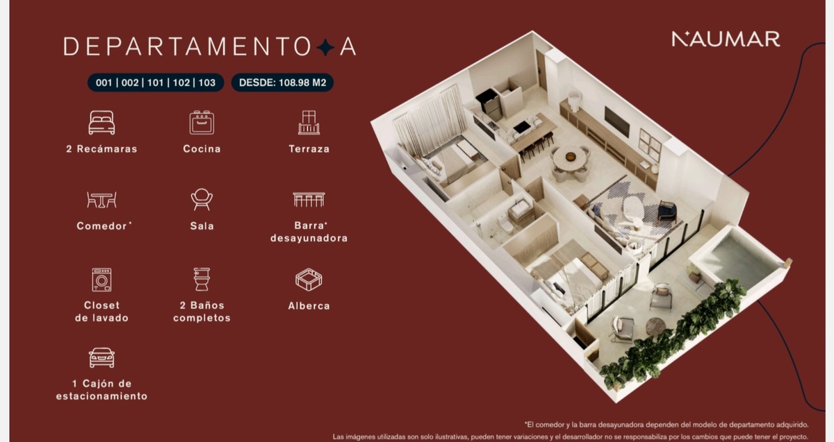 El desarrollo cuenta con una torre de departamentos de 1 o 2 recámaras, con construcciones desde 37.1m2 hasta 120.7 y precios desde $3,223,172 hasta $10,170,003
