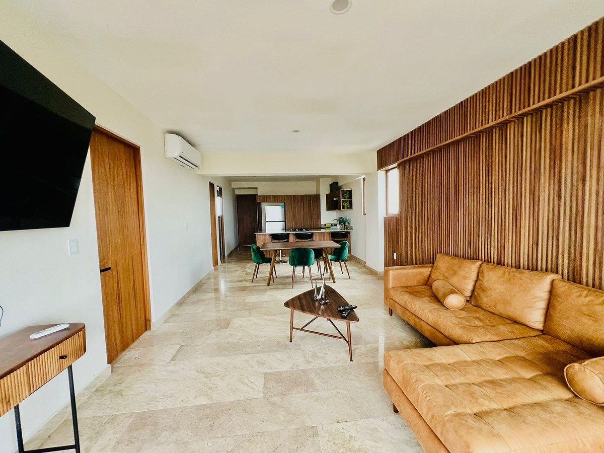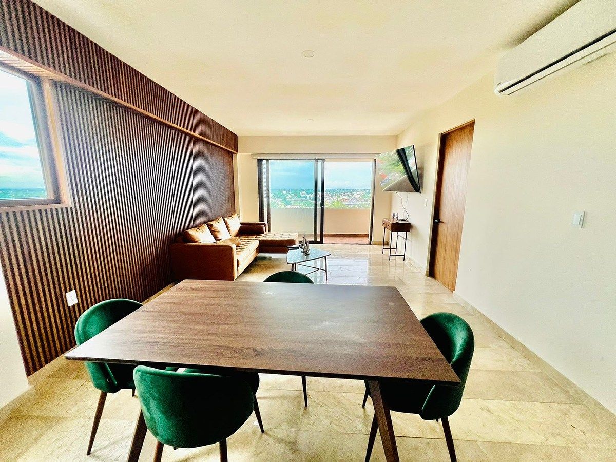 2 Recámaras y 2 baños completos, sala-comedor, cocina equipada, área de lavado, estacionamiento, amplio Balcón con excelentes vistas al Mar y al Río