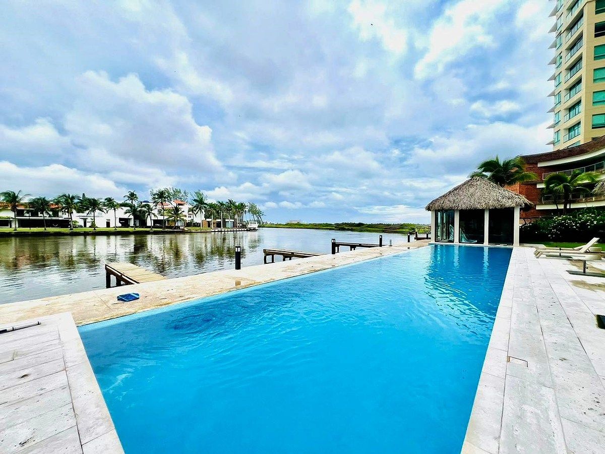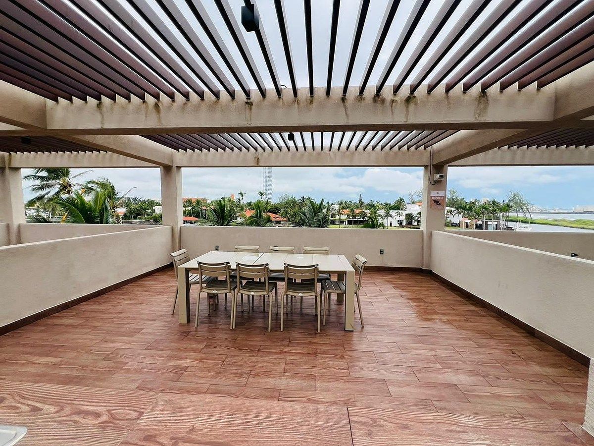 Amenidades: alberca, carril de nado, gimnasio, ludoteca, centro de negocios, salón de usos múltiples, jardines, bar con palapa, camastros, 4 muelles, recepción y seguridad 24/7