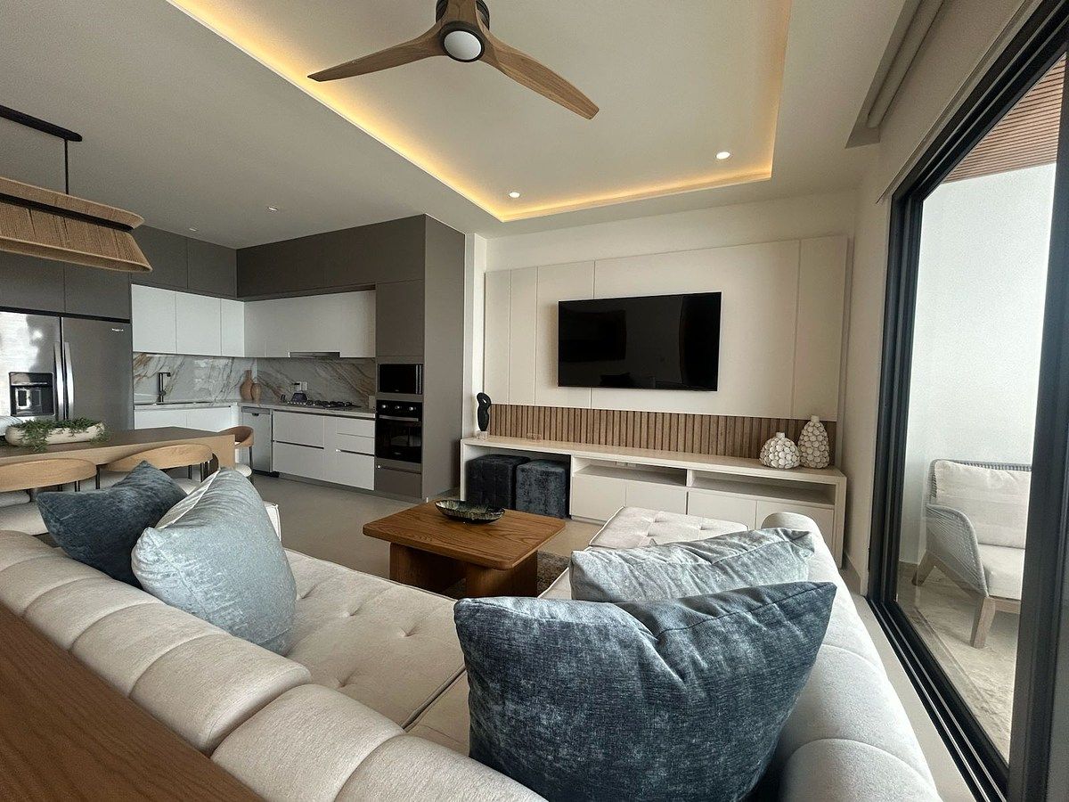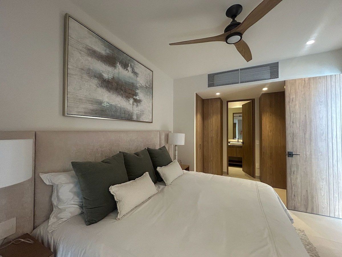 Estructura de concreto armado con acero y losas aligeradas, muros divisorios entre condominios y contra pasillos de block sólido con acabado arenado fino, piso de porcelanato color marfil, ventanas de PVC con vidrio templado y equipo de aire acondicionado con sistemas VRF.
