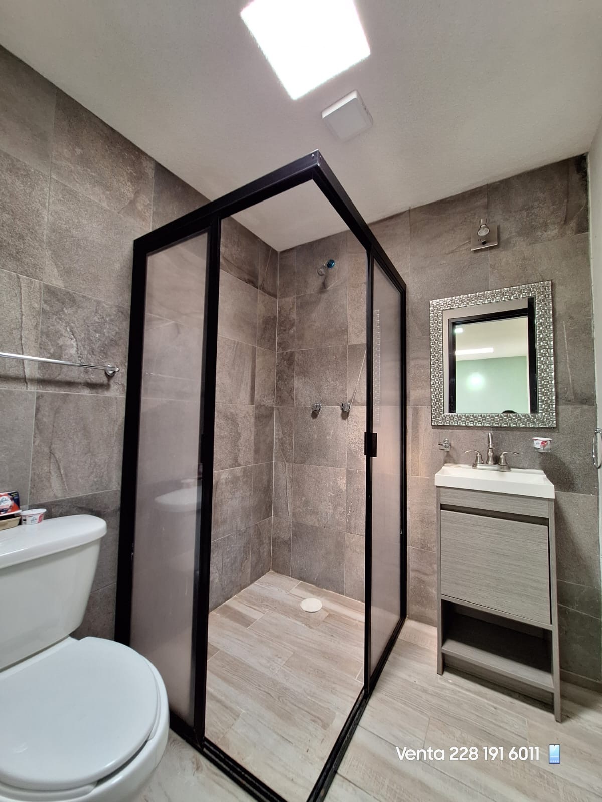Planta alta: recámara principal con vestidor y baño, y atrás hay dos más con clóset y baño completo compartido